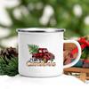 Christmas Tree Deer Truck Print Enamel Mugs Coffee Cups Christmas Party Dessert Hot Cocoa Chocolate Cup Gifts for Friends Family
