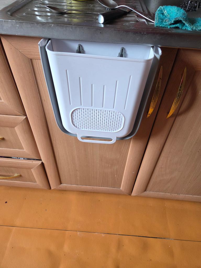 Looks great, took a small one, hung it on the door of the kitchen unit, put a cellophane bag inside, very convenient. I am happy with the purchased one. Thank you! I recommend buying it 👍