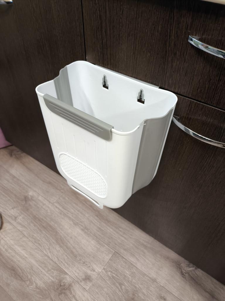convenient container for food waste, attaches to the cabinet door, can increase in size thanks to the bellows.