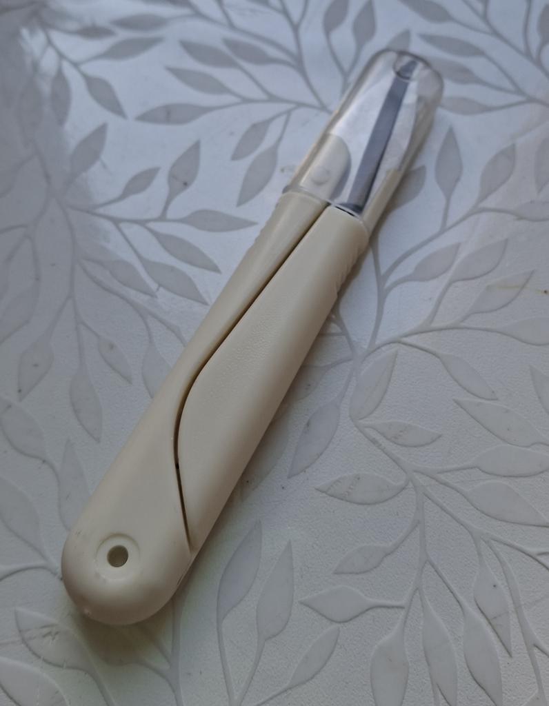 The product is very good, arrived quickly, thank you. Good design, sharp blades, nice plastic, better design than the previous one, there is a cover for the knife blade