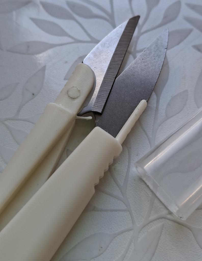 The scissors are great, very convenient for cutting thread, small and with a blade cover. I recommend them.