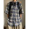 Retro Plaid Shirt Men'S Short Sleeved Trendy Casual Versatile Shirt Hong Kong Style Spring And Autumn Hooligan Handsome Inch Jacket