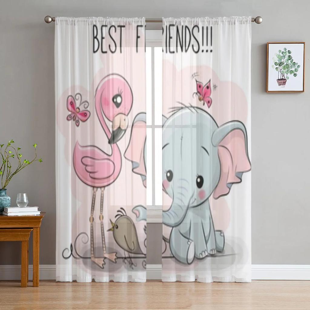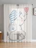 Cartoon Little Elephant With Star And Moon Sheer Curtains For Living Room Window Transparent Voile Tulle Curtain Bedroom Drapes