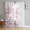 Watercolor Pink Cherry Blossom Ink Chiffon Sheer Curtains for Living Room Bedroom Decoration Window Voiles Tulle Curtain Drapes