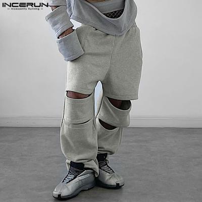 INCERUN Men Elastic Waist Adjustable Cutout Glitter Long Pants Cargo Trousers