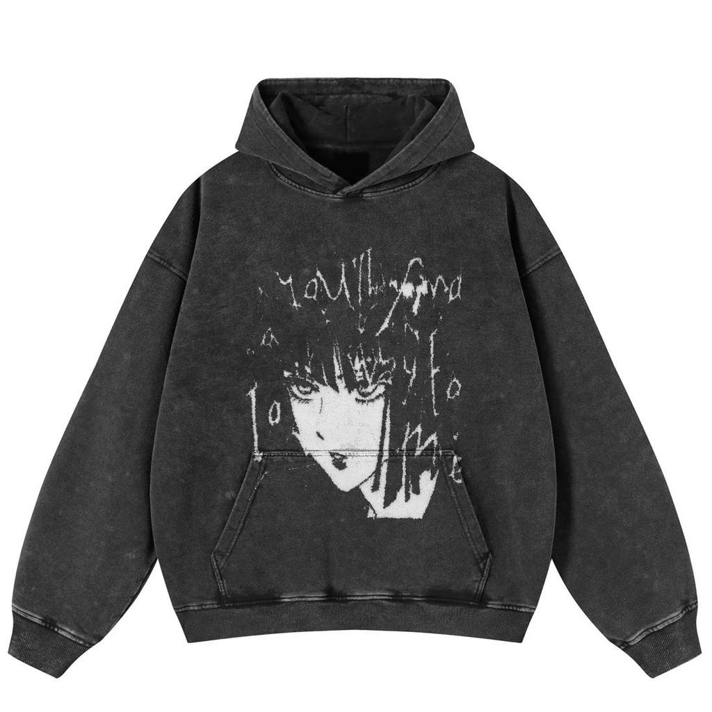 Streetwear Retro Cartoon Graphic Washed Black Oversized Unisex Y2K Hoodie