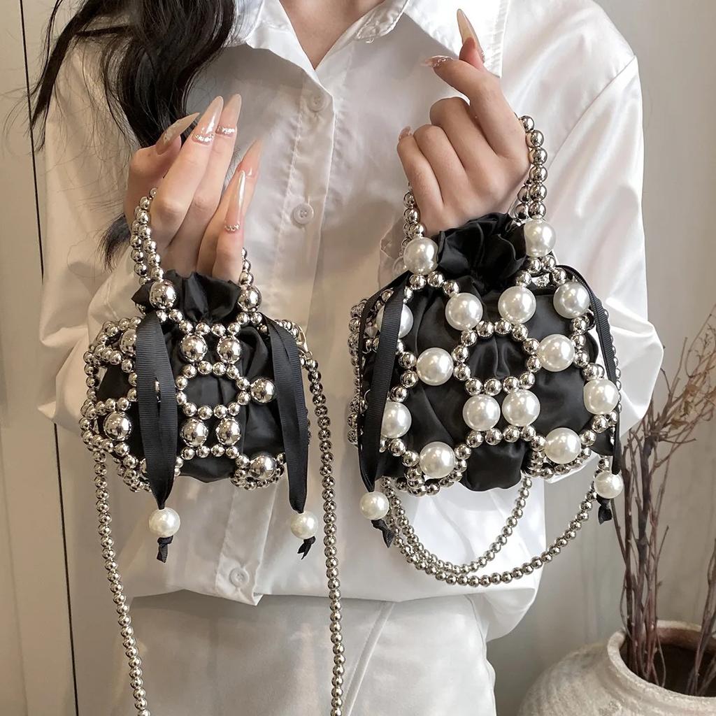 Spring Summer New Beaded Pearl Mini Children's Parent-child Model Hand-carried Oblique Span Small Shoulder Bag