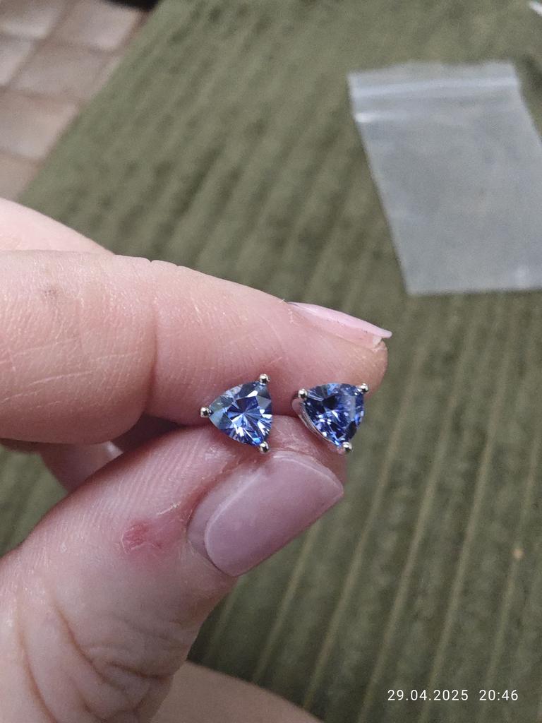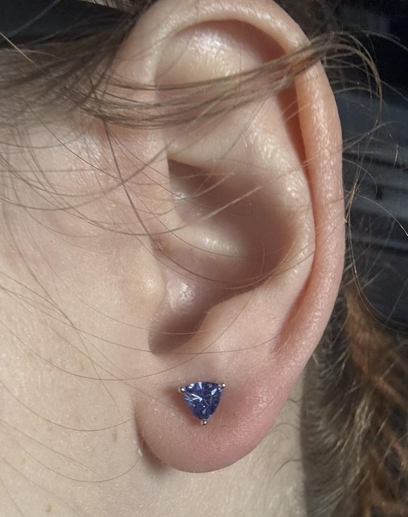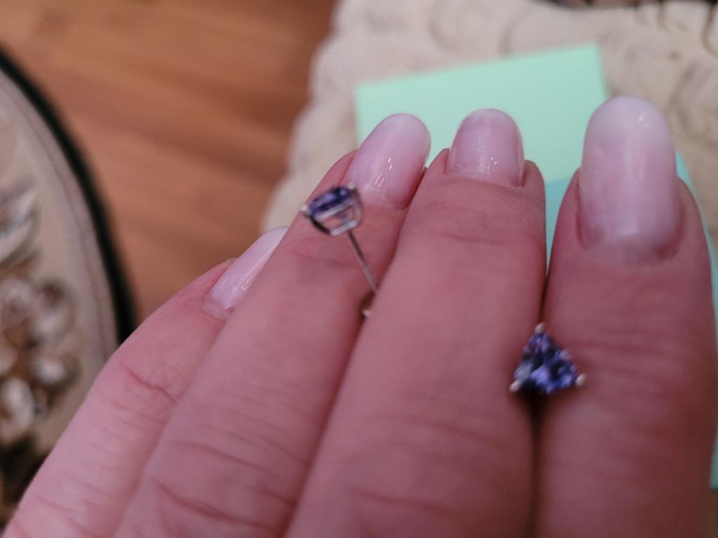 The earrings are beautiful, they fit well to the ear and I only hope that it is a natural stone, i.e. tanzanite. They are beautiful and very delicate.