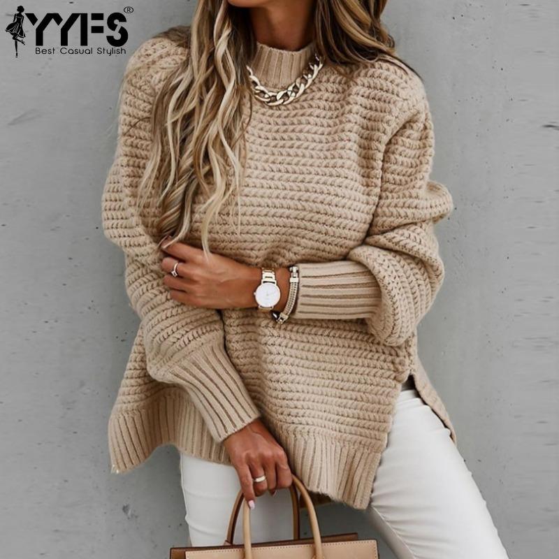 YYFS Women's Fashion Casual Fall Winter Solid Color Print Long Sleeve O-Neck Sweaters