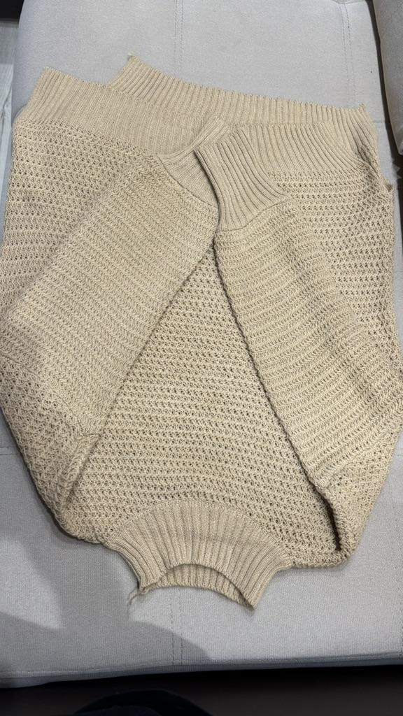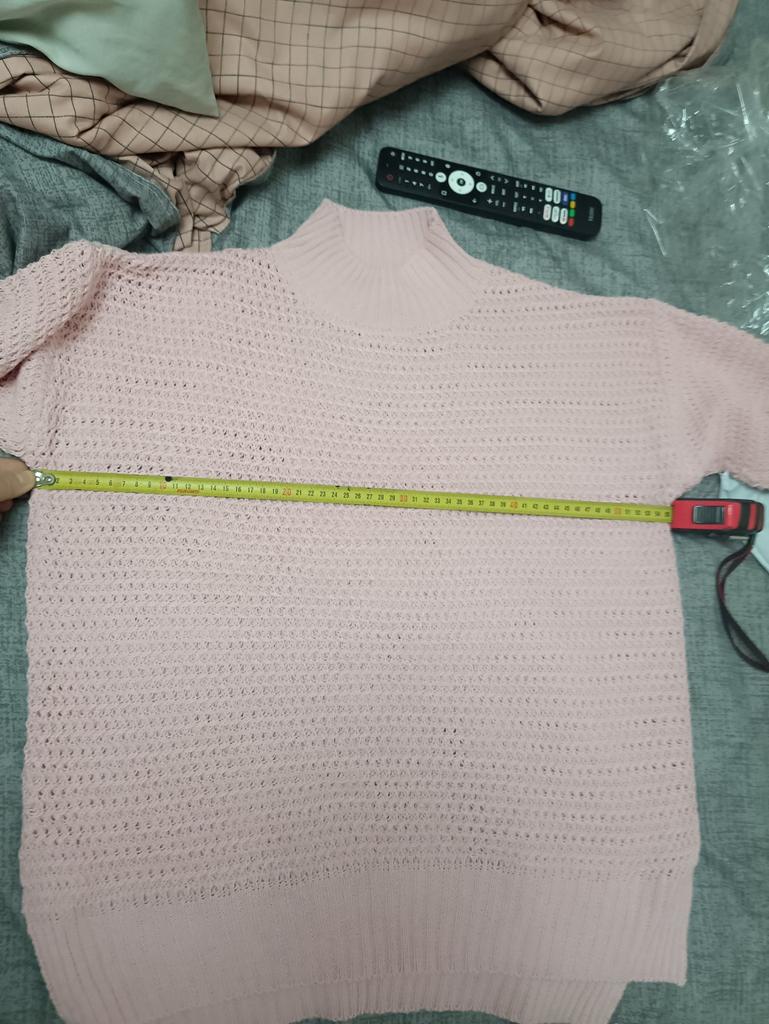 Terrible sweater, nothing like the picture, short, the knit is completely different and the color also differs, smells like very strong sweat, awful...