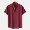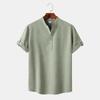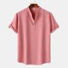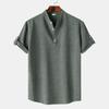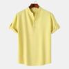 Men's Shirt Spring Autumn Men's Solid Color Standing Collar Short Sleeved Shirt Men's Slim Fit Inch Shirt Men's Clothing