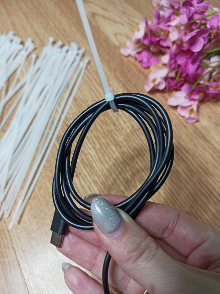 โค๏ธ๐Cable ties (100 pieces) Cable ties are a universal accessory that will come in handy not only for professional cable installation, but also in everyday life. A set of 100 pieces, I chose the size 2.5 x 200 mm - this is the optimal solution for performing various tasks that require fixing wires, fastening elements or even temporary repairs. The ties are made of nylon, which provides strength. The ties can withstand significant tension, which is important when working with heavy wires or large bundles. The material remains flexible even at low temperatures, making them suitable for both indoor and outdoor use.. The ties are resistant to ultraviolet radiation and do not lose their properties under the influence of sunlight.. โค๏ธ๐I recommend for purchase to those who are looking for high-quality and reliable accessories for fixation.