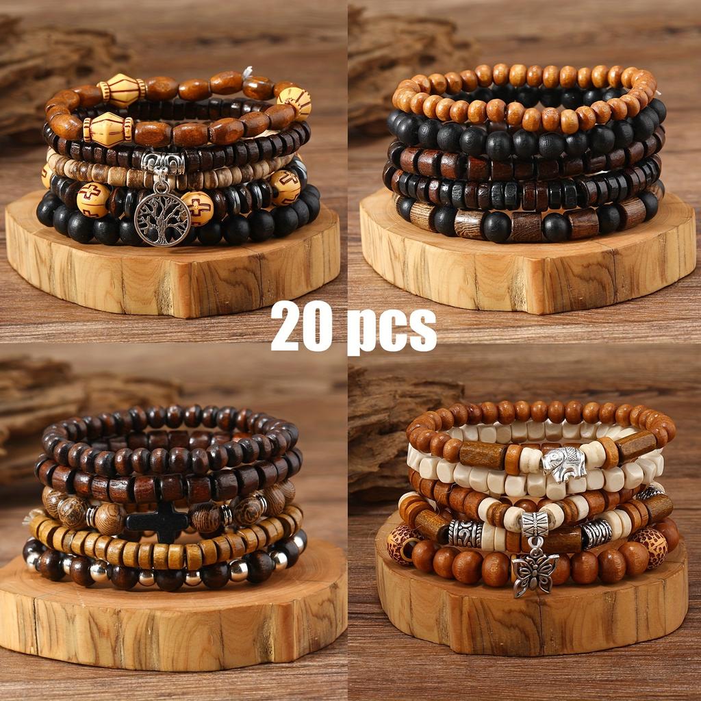 iF ME 20 Piece Retro Bohemian Style Men's Handmade Bead Bracelet Set, A Fashionable Gift for Friends, Sons, and Grandsons