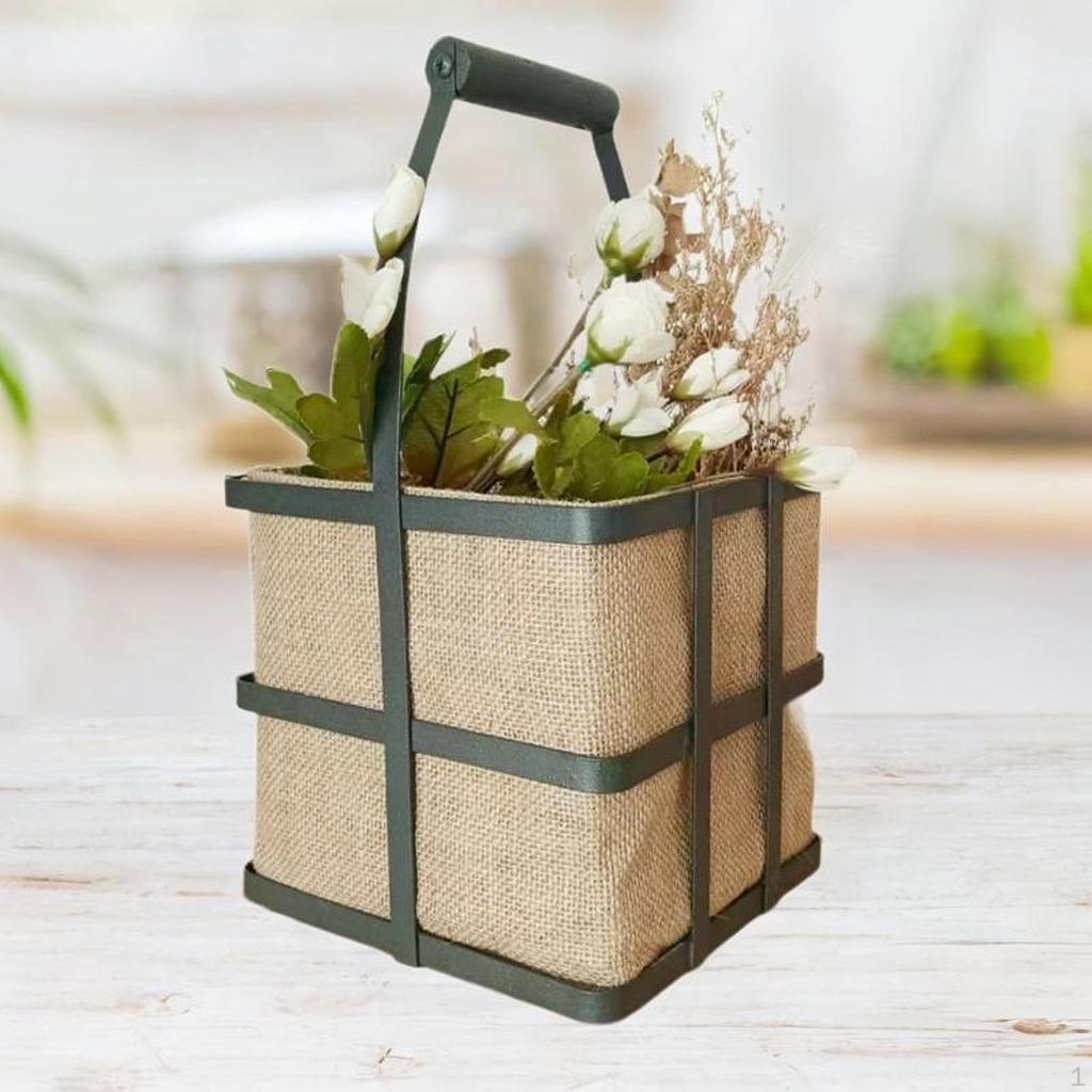 - 【Premium Quality】: This storage basket is made of iron with a hollow handle, lined with yellow hemp material. It features a waterproof layer inside, making the basket extremely sturdy. Its reflects the charm of American country pastoral and can also be used for dried flower storage