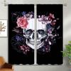 Skull Stealing Floral Creative Print Curtains, Suitable for Living Room, Dining Room, Study Room, Halloween Decoration