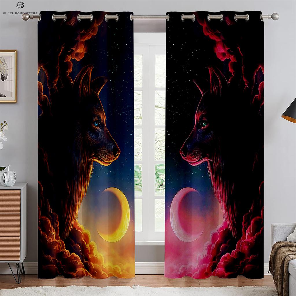 Starry Sky Moon Wolf Animal Print Window Blackout, Insulation Curtains, Bedroom, Living Room, Outdoor Kitchen Decorative Curtain