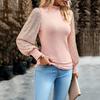 Women's Autumn and Winter Half High Neck Long Sleeve Pullovers Sequined Patchwork Knitted Top Female Long Sleeve Tops