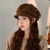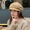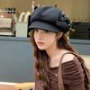Hat Female Japanese Early Autumn Thin Octagonal Hat Versatile Pearl Bow Big Head Circumference Showing Face Small Newsboy Hat