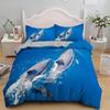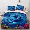 Dolphin Ocean King Queen Duvet Cover Cute 3D Sea Animal Bedding Set for Kids Teens Adults Shoal of Fish Blue 2/3pcs Quilt Cover