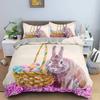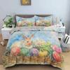 Cartoon Rabbit King Queen Duvet Cover Pet Animal Carrot Bedding Set for Kids Easter Theme Bule Polyester Quilt Cover