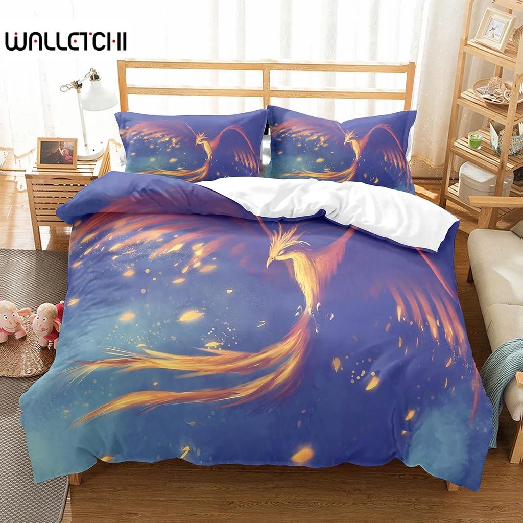 Phoenix Duvet Cover Set King Queen Size For Kids Boy Girls Bedding Set Yellow Animals Pattern Polyester Quilt Cover With Zipper