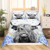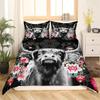 Highland Cow Duvet Cover Western Farm Animal Bedding Set Full King For Boys Girls Microfiber Floral Bull Cattle Comforter Cover