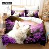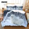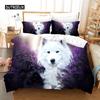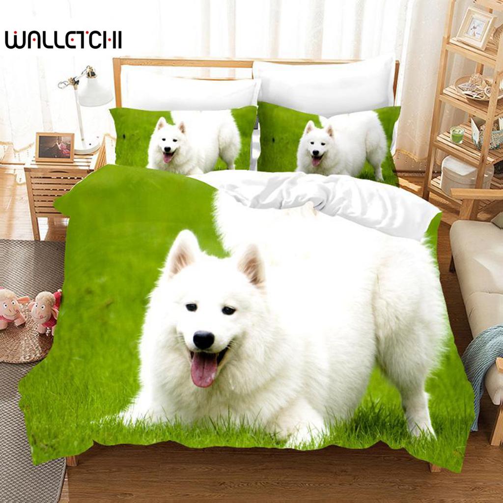 Samoyed Duvet Cover Set Cute Dog Pattern Decor Bedding Set Grass Green for Kids Girls Adults Lovely Animal Polyester Quilt Cover