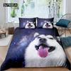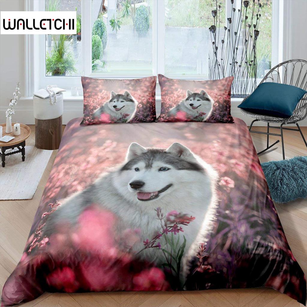 Husky Duvet Cover Puppy Pet Flower Floral Jungle Natural Scenery Cute Animal Bedding Set Polyester Double Queen King Quilt Cover