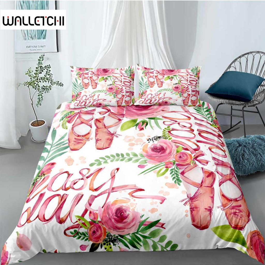 Ballet Duvet Cover Set King Microfiber Ballet Accessory Shoes Dress Bedding Set for Girls Rose Leaves Summer Style Quilt Cover