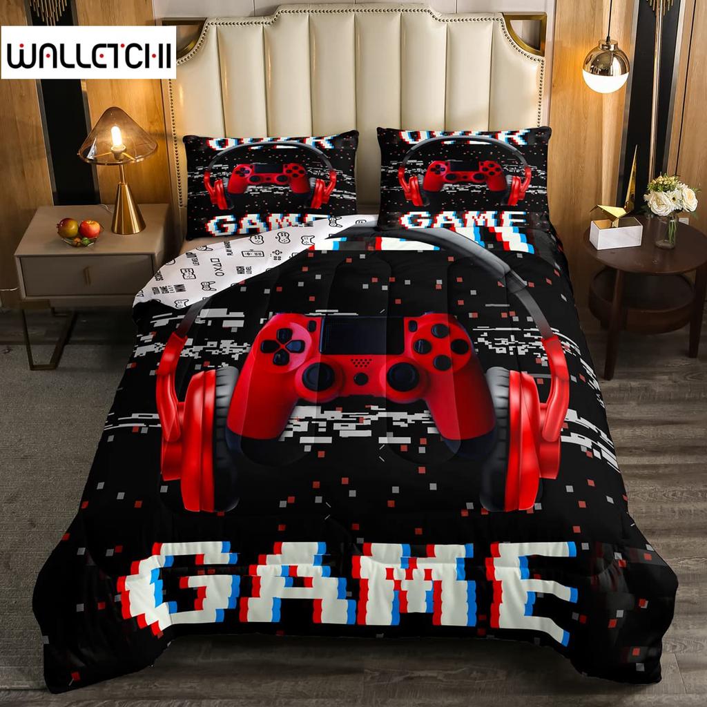 Gaming Bedding Set Game Bed Cover 135 for Adults Kids Soft Microfiber Modern Gamepad Duvet Cover Decorative with Pillowcase