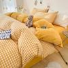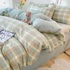 INS Plaid Bedding Set Pink Green Bed Linens Nordic Duvet Cover Pillowcase Queen Size Flat Sheet Adults Kids Bedclothes
