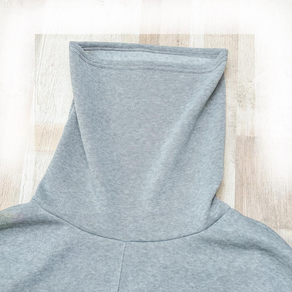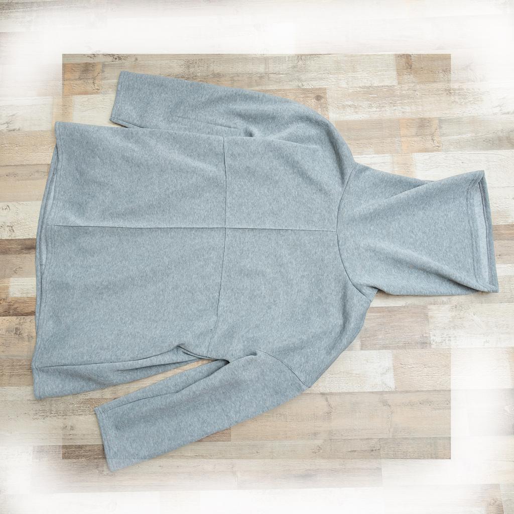 The sweater in gray is of different quality. This one is thinner, doesn't hold its shape well, and seems to be sewn incorrectly in the neck area. It will most likely pill.