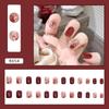 24 Pcs Atmospheric Manicure Rose Red Gold Foil Smudged Fake Nails Ice Transparent Jujube Red Wearing Nail