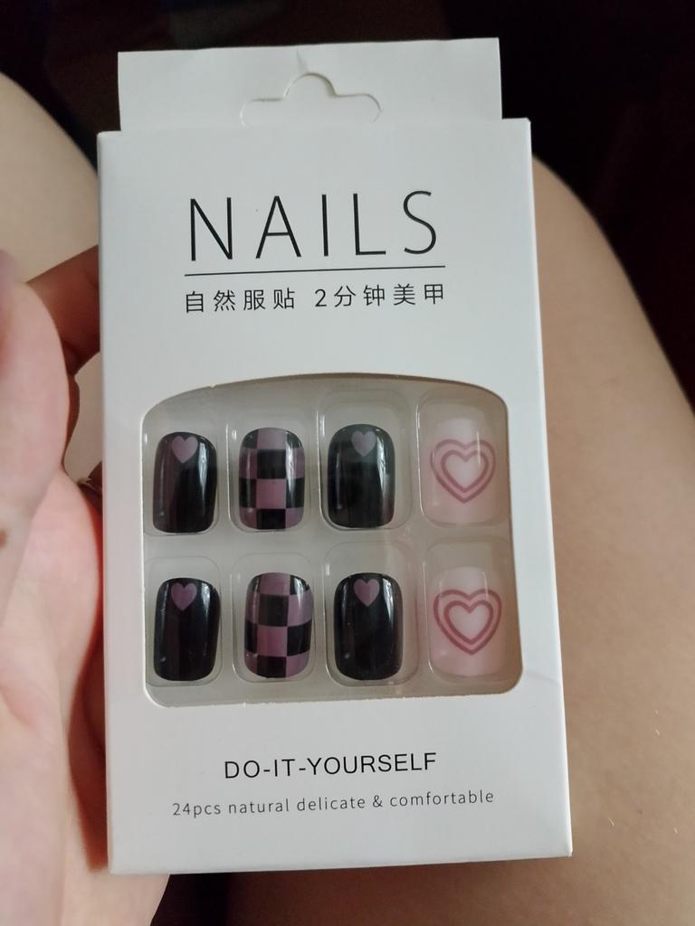 24 Pcs Spice Girl Sweet Cool Ins Wind Wearing Nail Pink Love Impact Black Purple Full Nail Art