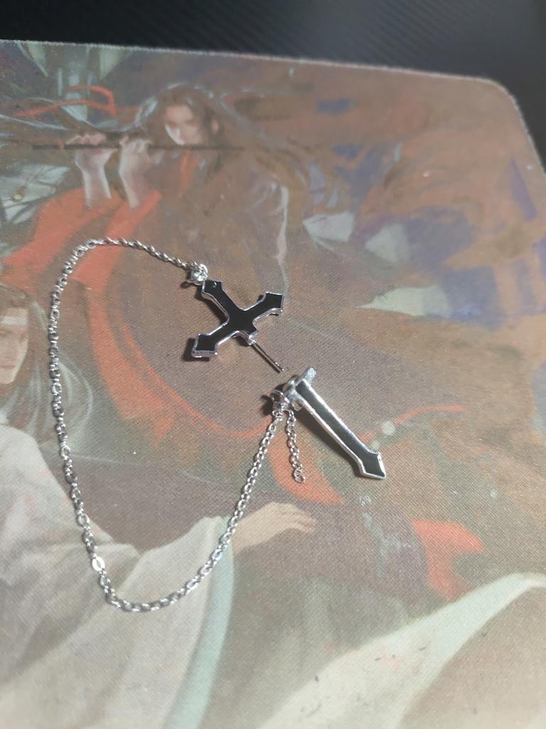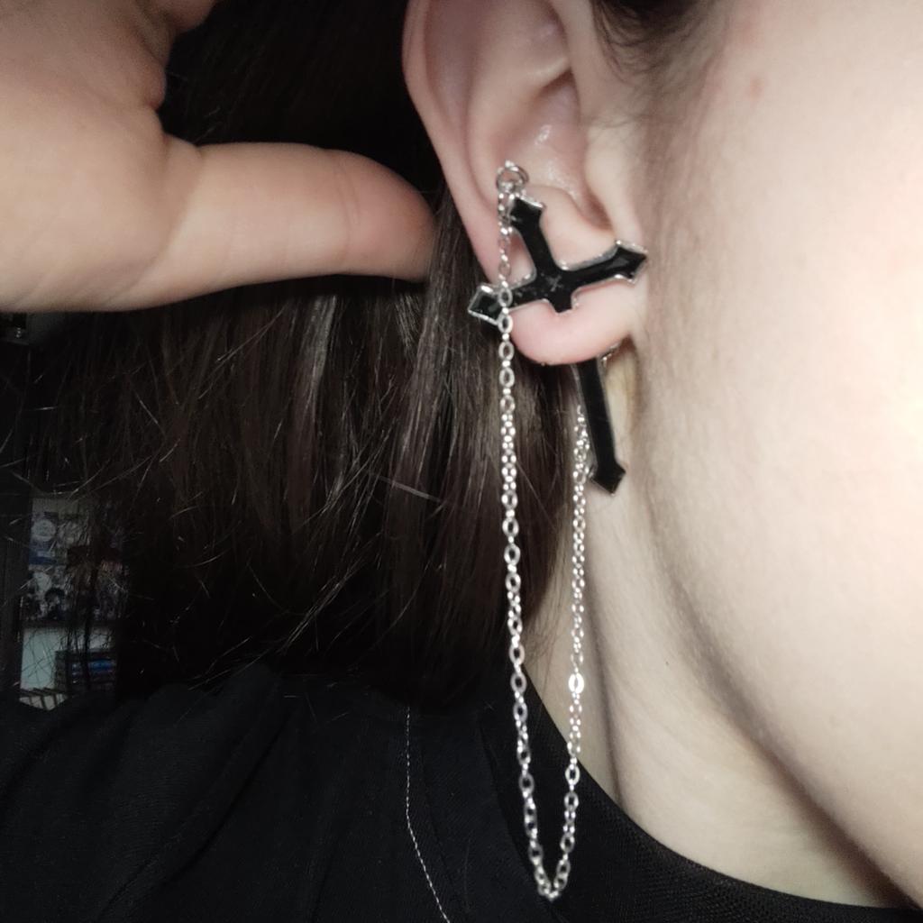 Men Women Street Punk Chain Stylish Cross Non-allergic Delicate Dangle Earrings
