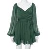 Women's Summer Solid Color Casual Mesh Long Sleeve Strappy Backless Slim Short Dress