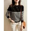Women's Autumn and Winter Black and White Striped Knitted Cardigan Loose Sweater