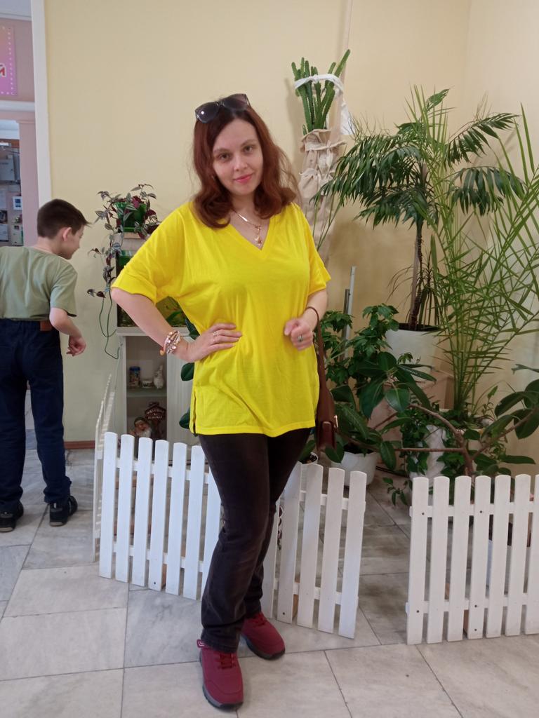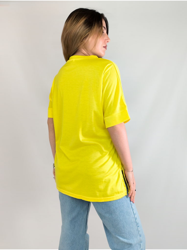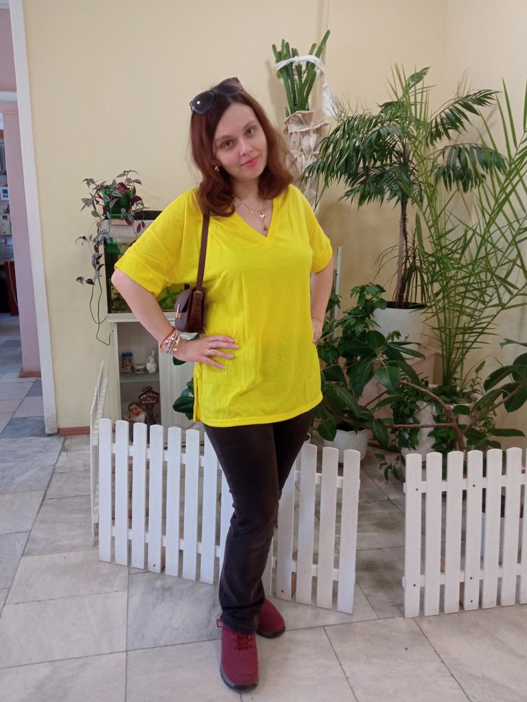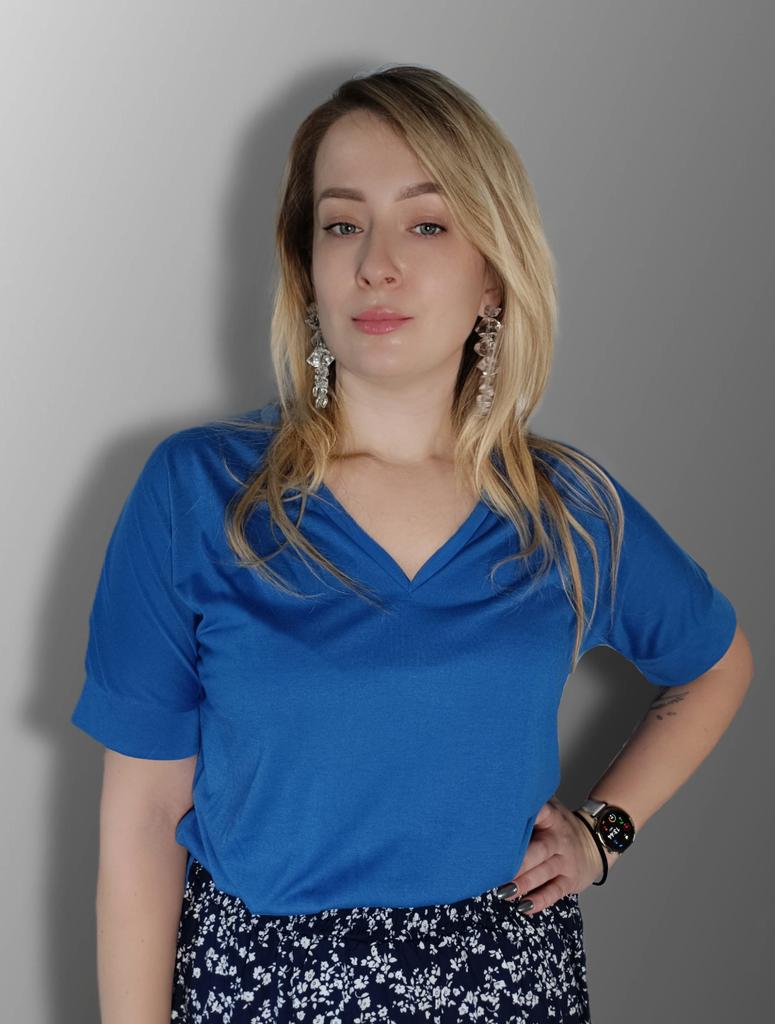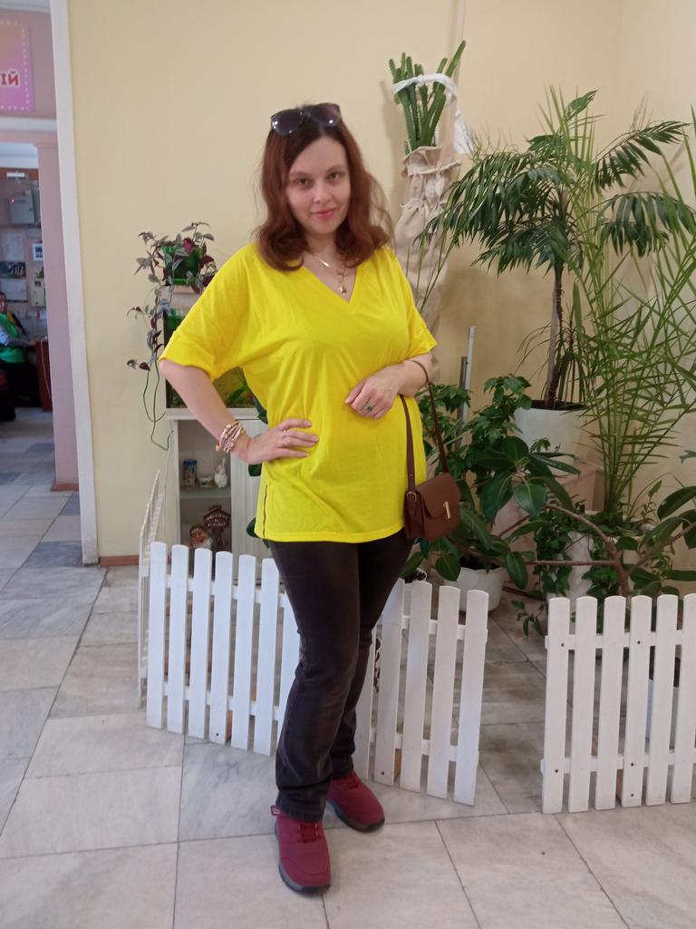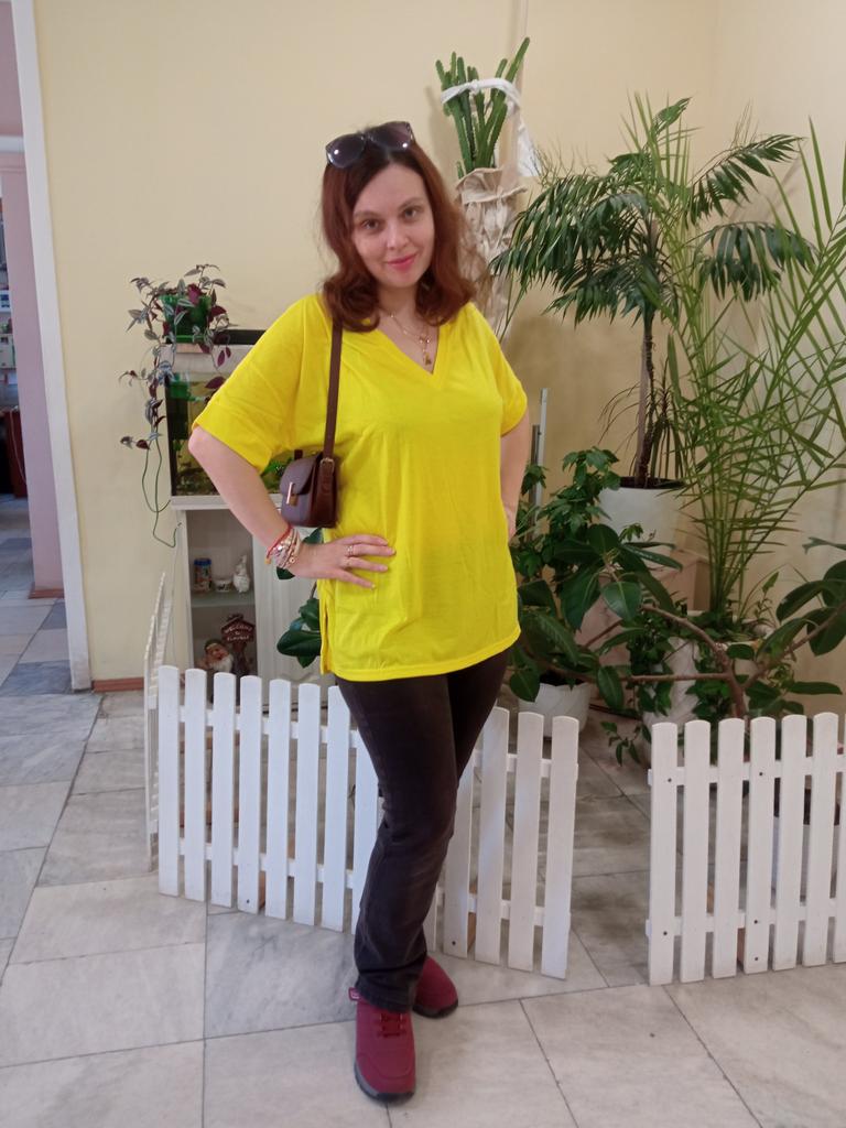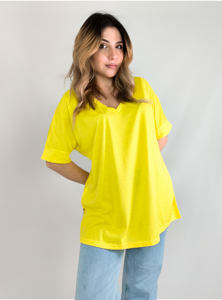 This shirt is a great choice for plus-size women looking for a basic, comfortable, and flattering item for summer. The loose fit combined with a V-neck creates a body-flattering look, with a sense of airiness and comfort.. The uniform and clean colors allow for easy integration with any item of clothing – jeans, a skirt, or shorts. The fabric, made of cotton and spandex, ensures a soft feel on the skin with a slight stretch that adapts to the body's natural movement.. The stereoscopic elements add a subtle design interest, without being too dominant. This shirt is suitable for everyday wear, for work, or for a light summer outing – a classic item that is always worth having in the closet.