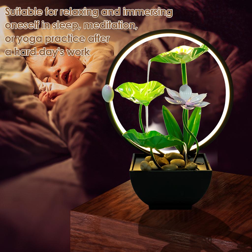 Water Lily Tabletop Fountain With Natural Stone USB Charging Desk Fountain With Built In Pump 3 Tiers Green Leaf Waterfall