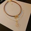 Melad Coffee Colored Tiger Eye Stone Bead Necklace, Niche Retro Collarbone Chain, Personalized and Fashionable Design Accessory