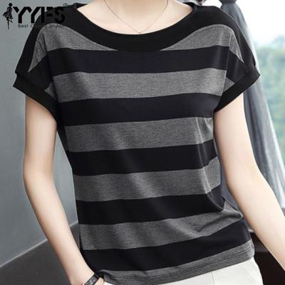 Women's Fashion Casual Summer Spring Stripe Print Short Sleeve O-Neck Blouses & Shirts