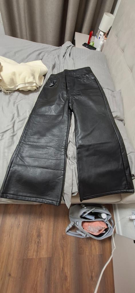 Velvet Thickened PU Leather Pants Women's Winter Loose Casual Wide Leg Pants Elastic High Waist Black Nine Points Harem Pants
