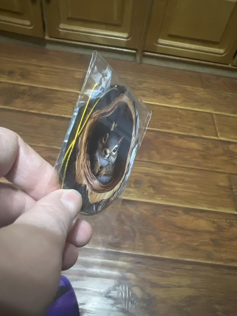 The decoration is disappointing. It is a small dimensional disc with a red ribbon with a cute hedgehog that would be so much better if it was a 3D bauble.