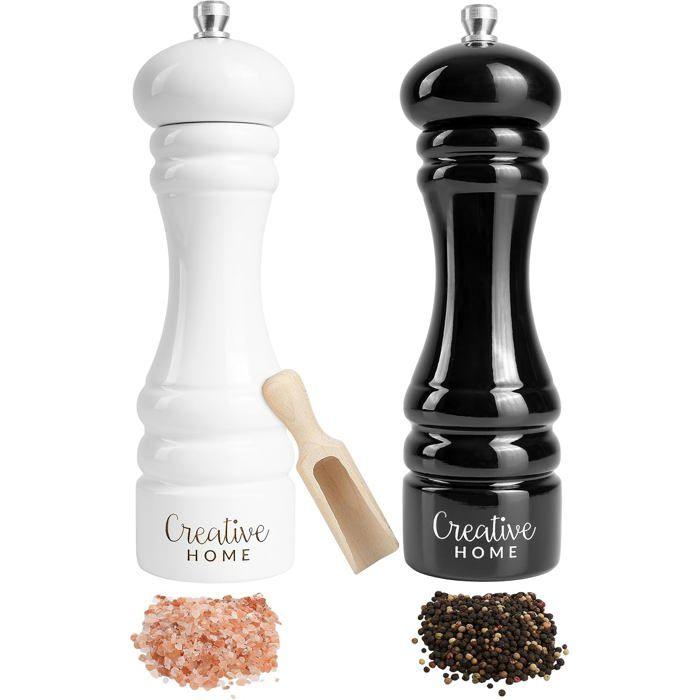 Moulin Sel et Poivre - CREATIVE HOME - Duo Manuel en Bois - Noir et Blanc