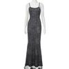 Women's Casual Washed Printed Sleeveless High Waist Slim Halter Long Dress