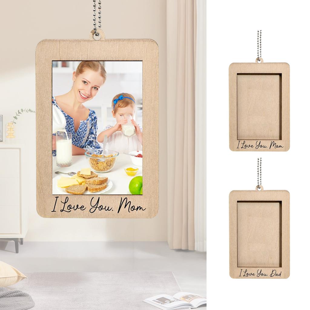 Wooden Decorative Hanging Photo Frame, Driving Safety Decorative Rearview Mirror Accessories Car Photo Frame