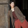 Johnature Women Vintage Shirts Solid Color Tops Autumn Button Long Sleeve O-Neck Pockets Women Shirts