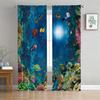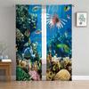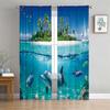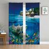 2 Panel Blue Sea Curtain Sea Creature Dolphin Turtle Curtain for Bedroom Living Room Kitchen Window Tulle Sheer VoileCurtains