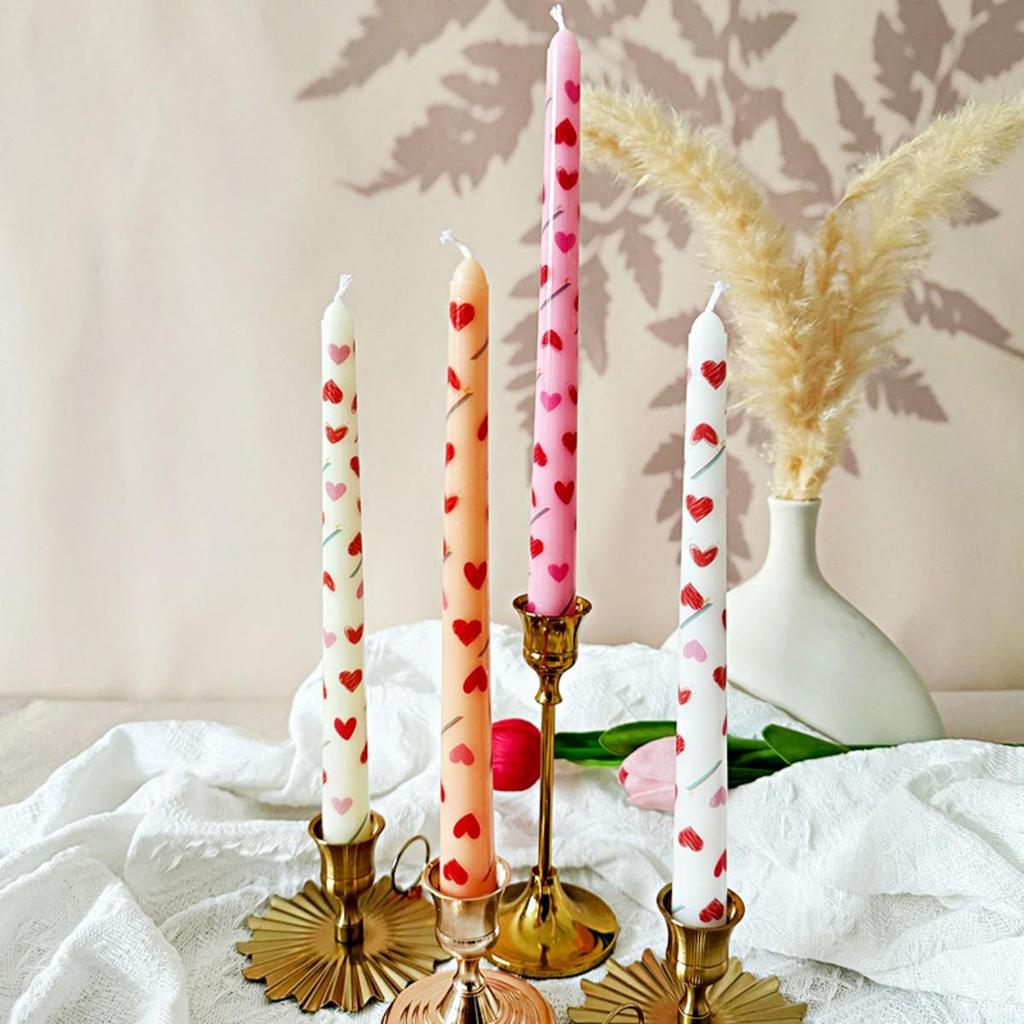 2Pcs Love Style Rich Colors Pattern Printing Smokeless Wedding Decoration Candlelight Dinner Long Candle Decoration Supplies
