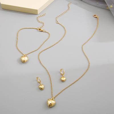 4Pcs/Set Exquisite Heart Earrings Necklace Women'S Bracelet Fashion Simple Romantic Pendant Jewelry Set New Trendy Gifts